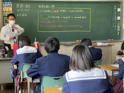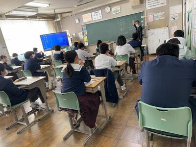 今日は2−1は数学、2−2は英語。入試にも出題される計算や表現を学習していました。