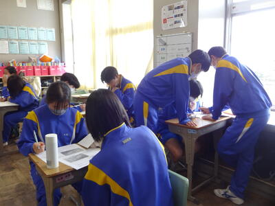 ピアノと将棋と問題集~それぞれの昼休み~ 2023年1月18日 17時44分 中学校生活最後の定期考査を明日に控え、3年生は昼休みも猛勉強。2年生はピアノを弾いたり、将棋をしたり。1年生は外で元気にボールを追いかけていました。