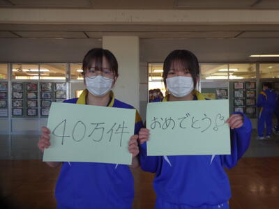 いつもホームページを見ていただきありがとうございます。昨日、めでたく40万件に達しました。今後ともどうぞよろしくお願いします。