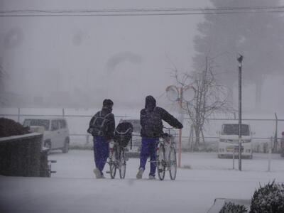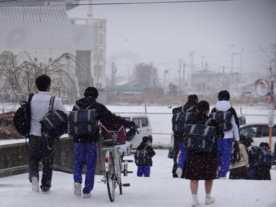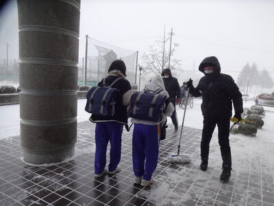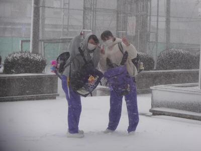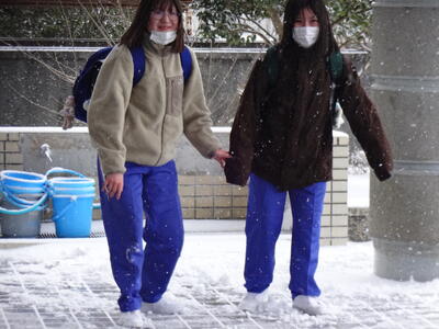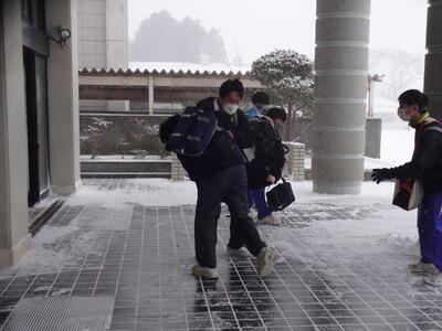 本校も大雪に見舞われました。下校する生徒達は、滑りやすくなった玄関先で大はしゃぎ。帰り道、くれぐれも気をつけて!