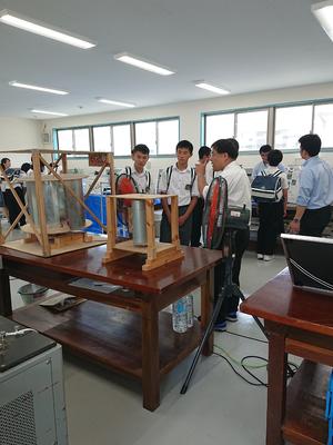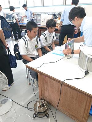 高等学校オープンスクール真っ盛り! 2019年7月26日 16時06分 3年生が高校の体験入学に参加しています。小高産業技術高等学校の電気科に参加した生徒達は、初めて見る施設や設備に興味津々。進学への意欲を高めていました。
