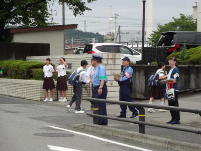 おまわりさんが、気合いを入れてくださいました! 2019年8月23日 16時02分 8月22日、2学期がスタートしました。朝の校門前では、南相馬警察署の皆さんが、生徒一人一人に声をかけてくださいました。ビシッと背筋が伸びました。ありがとうございました。
