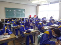 8時には、皆着席し、1,2年生は読書、3年生は問題集に取り組んでいました。
