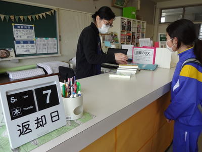 2020年4月27日 12時09分今日は図書の貸し出し日です。家庭学習に役立つ本や、自宅での有意義な過ごし方について紹介している本など、多数取りそろえています。早速手にとって借りていく生徒達も。クラスごとに指定された時間に来てください。待っています!