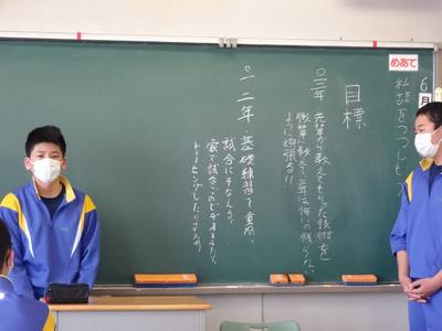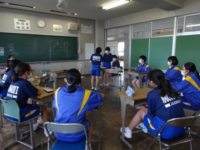 今日から部活動が本格的にスタート! 2020年6月15日 17時22分 1年生の仮入部期間が先週で終わり、今週から本格的に部活動が始まります。新入部員を迎え、今日は各部でミーティングを行いました。活動目標を決めたり、部活動の心得を話し合ったりしていました。