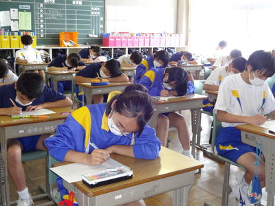 国語の基礎学力テストを行いました 2020年6月17日 17時47分 基礎的・基本的な内容の定着を図るために、基礎学力テストを実施しています。今回は国語です。基礎的な漢字が30問出題されました(全学年共通)。生徒達は寸暇を惜しんで頑張っていました。満点とれるといいですね!