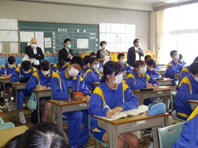 第1回の学校評議員会を開きました。学校経営についての説明のあと、授業を参観していただきました。その後の協議の中では、授業のタテ持ち、学びの機会の拡充、ICT環境の整備、コロナ禍における生徒の心のケア等について活発な意見交換が行われました。