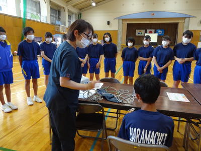 2020年8月27日 16時18分南相馬市立病院の看護師さんと南相馬市健康づくり課の皆さんを講師としてお招きし、看護師の仕事について学ぶ会を開きました。生徒達は、医療の現状と課題について知るとともに、血中酵素や血圧測定、嚥下食の試食等を体験しながら、将来の職業や生き方について考えました。コロナ禍の厳しい状況の中でも、看護師の皆さんが、誇りとやりがいをもってお仕事をされている姿に感動しました。蒸し暑い体育館でしたが、笑顔で生き生きと生徒達に対応していただき、本当にありがとうございました。