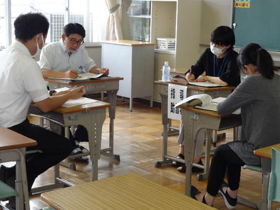 2020年9月15日 14時43分相双教育事務所及び南相馬市教育委員会の指導主事をお招きして授業研究会を行いました。本校は今年度、「自己を振り返り、学びをつなぐ生徒」というテーマで研究を進めています。一人一人が、自己を振り返り、学んだことを「次の学習」や「他の教科」、「社会や日常」と関連づけて捉えることによって知識が構造化され、学びは深まります。学ぶ意義や価値がわかれば、意欲も湧きます。また、学習方法を振り返って課題を把握し、改善することは、本校の教育目標である「自律」につながります。果たしてそのような授業になったでしょうか?