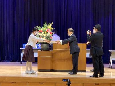 2020年9月25日 18時20分「第42回少年の主張福島県大会」が会津美里町で行われました。南相馬市の代表として本校生2名が出場。コロナ禍の今を生きる中学生の意見を堂々と発表しました。3年2組の松崎里帆子さんは、自粛警察を題材にして、本当の正義感とは何かを訴えました。3年3組の門馬有花さんは、志村けんさんの死に対するネット上の書き込みから考えたことを「ことばの力」と題して発表しました。二人とも聴衆の心を揺さぶる力強いスピーチだったそうです。結果は、松崎さんが優秀賞、門馬さんが優良賞でした。おめでとうございます!