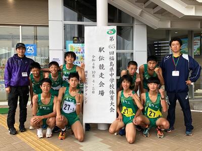 2022年10月5日 17時48分第65回福島県中学校体育大会駅伝競争が楢葉総合グラウンド駅伝コースで開かれました。本校男子チームのタイムは59分7秒。先月行われた地区大会の記録(1時間2分1秒)を3分近くも縮め、1時間の壁をついに突破することができました。生徒達は昨年の悔しさを胸に、この1年間毎日走り込んできました。その努力が大きく結実しました。「来年は入賞をめざす!」と皆意気込んでいます。生徒の可能性の大きさをつくづく感じた一日でした。応援してくださった保護者の皆様、本当にありがとうございました。