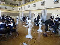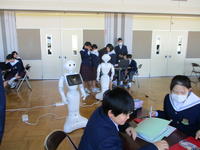 今年度もペッパーを使ったプログラミング学習が始まりました。今年度は、1・3年生は総合的な学習の時間を使って、2年生は技術科の時間でそれぞれプログラミング学習を行います。3年生は昨年度の経験を生かして、工夫を凝らしたプログラムを作成していました。
