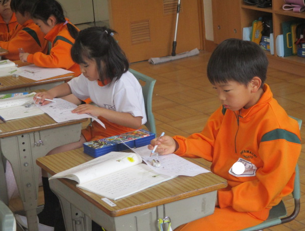 子どもたちは学習のまとめに真剣に取り組んでいました。