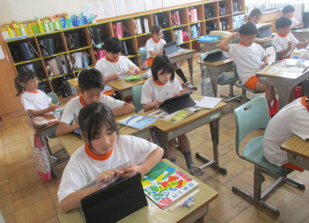 2025年6月9日 09時58分1組さんは図工の時間。タブレットでアイデア思考中。