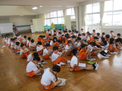 入学して1年たつと、こんなことができるんだよ、と発表する三小1年生は自信満々です。