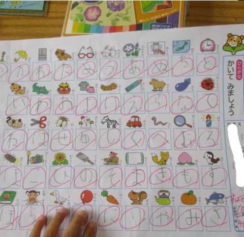 次は、国語の教科書を音読します。みんな、すらすら読めるのが、幼稚園のみんなにとっては、