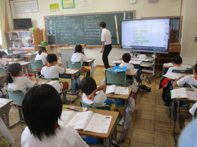 入学して1年たつと、こんなことができるんだよ、と発表する三小1年生は自信満々です。