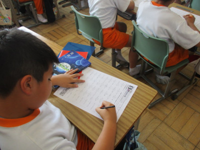 2025年7月4日 13時08分1組さんは漢字のテスト中