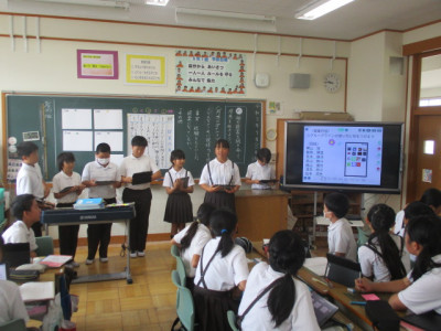 5・6年生が卒業式での呼びかけの練習をしていました。