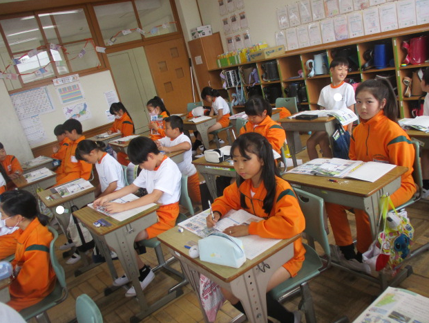 2組さんは国語の時間。友達同士で話し合って、答えを導き出していました。