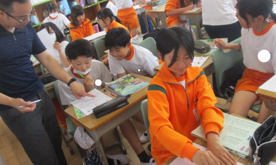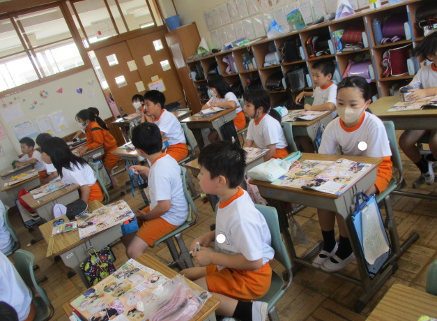 1組さんは道徳の時間。「ハムスターのあかちゃん」の資料から命の大切さについて考える時間です。