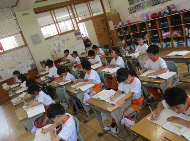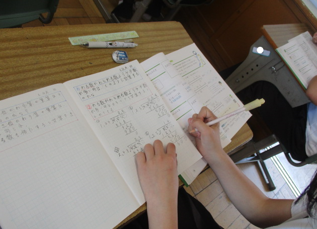 2組さんは小数のわり算。計算を確かめて、先生から「忘れちゃいけない」と言ったら、子供たちは