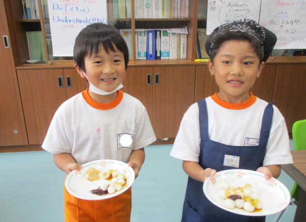 1年生はJAふくしま未来様の食育教室。今日は米粉団子づくりです。