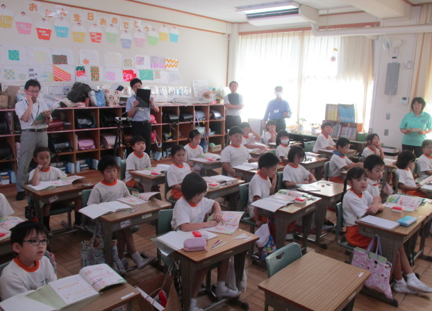 1組さんは、研究授業。算数の授業をたくさんの先生方が見学に来ました。