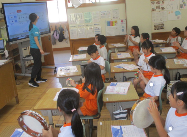 今日、先日の4年生の民謡教室に引き続き、1年生も民謡体験を行いました。