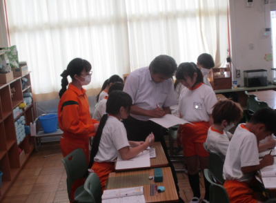 2組さんは算数の時間。分類を表にまとめています。学習の様子を南相馬市の方々が参観していきました。