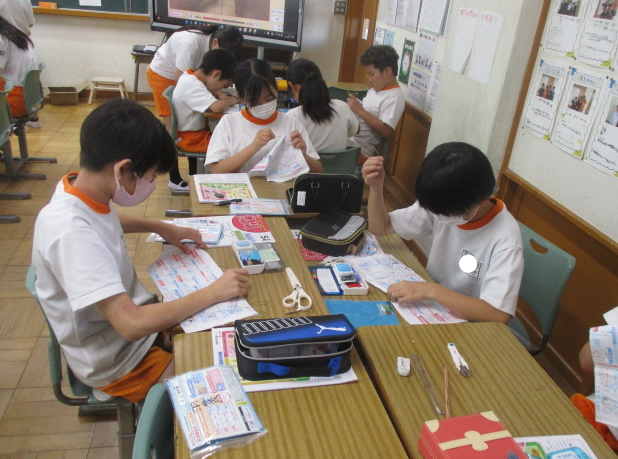 2組さんは社会の時間。スーパーの仕事で「お総菜コーナー」の店員さんの工夫や苦労点をまとめていました。