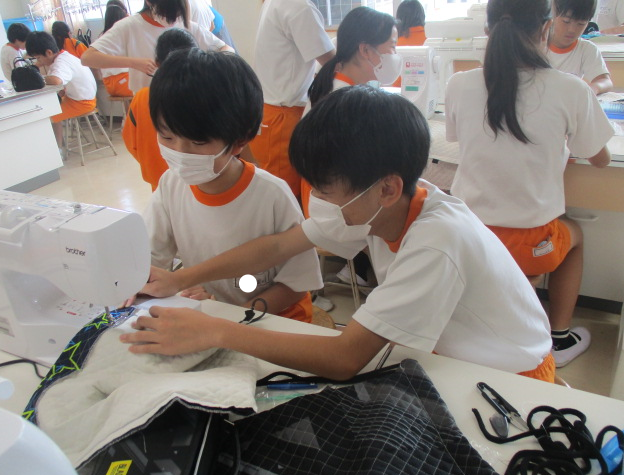 2組さんは家庭科の時間。運針中でした。手ほどきが大画面でスロー再生で流れているので、急がずに手順を確認しながらすすめていました。