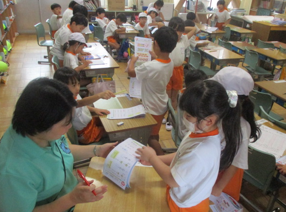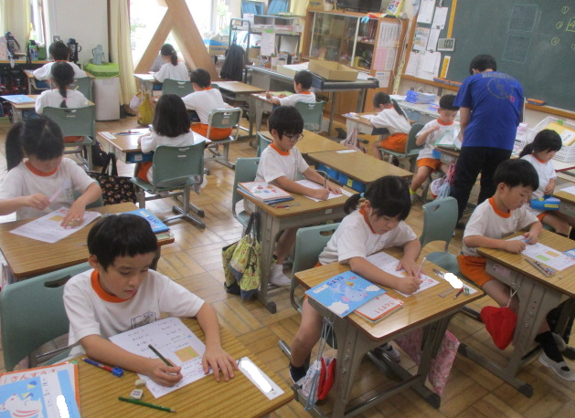 1組さんは道徳の時間。「ひとふみ10年」という資料を使って、自然愛護や自然との共生について考えていました。5年生は6月に宿泊活動で自然体験活動をいっぱいしてきました。