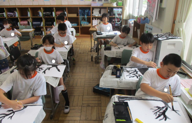 1組さんは図工の時間。「モチモチの木」を画面に開始。