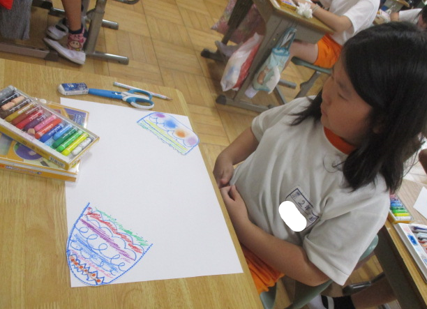 2組さんは図工の時間。卵から生まれた???? 何がうまれるのでしょうね。