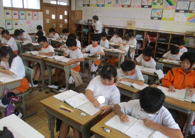 2組さんは算数の時間。自由進度学習中。2人の先生で個別指導中。