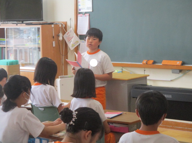 2組さんは算数の時間。振り返りの時間を行っていました。