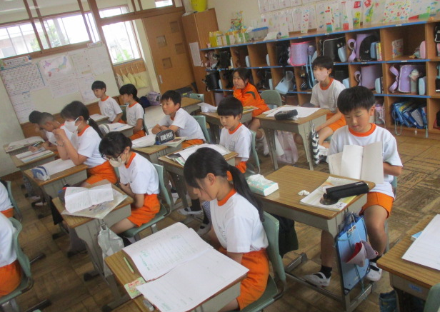 3組さんは音楽の時間。「まきばの朝(文部省唱歌)」の歌のテスト中。福島県鏡石町の牧場での朝の様子を思い浮かべながら、子供たちの歌声が教室に響きわたりました。