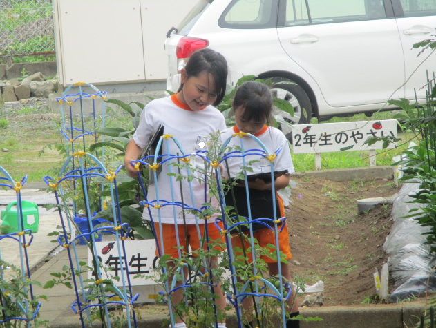 3組さんは生活科の時間。ミニトマトが大きくなってきたので、絵日記づくり。わき芽をしっかりとっていたので、すくすく育っていますね。