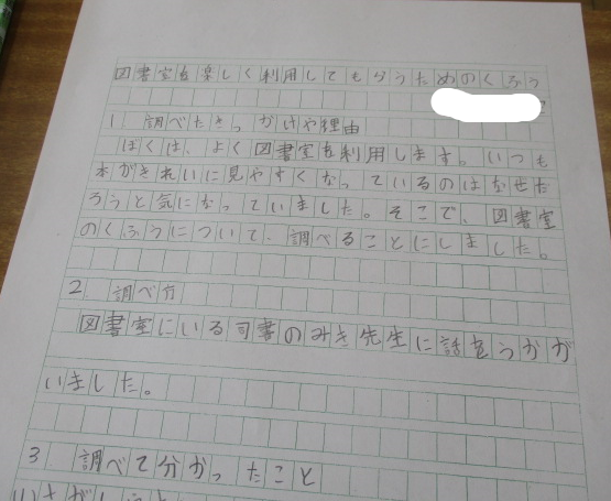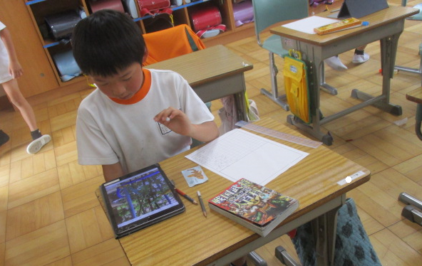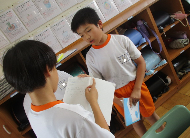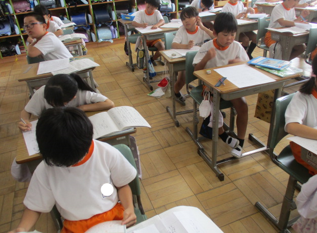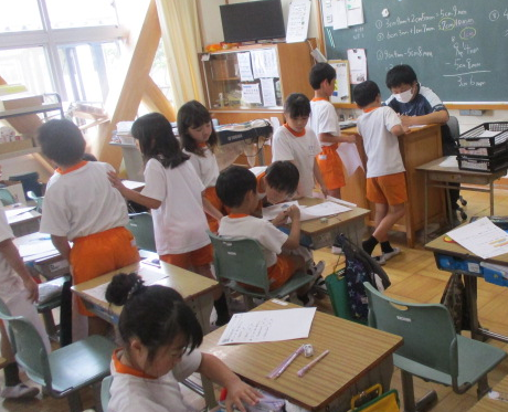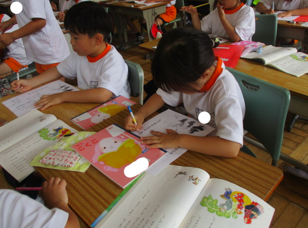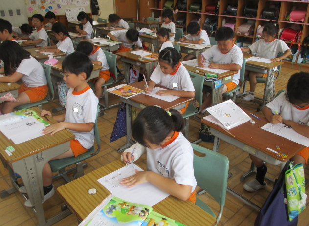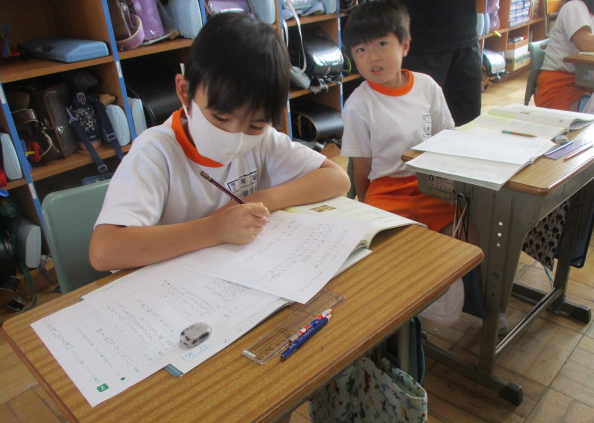 1組さんは国語の時間。横書きの作文にチャレンジ中。夏休みの課題にある作文、ぜひ横書きでチャレンジする力も身に付けましたね。