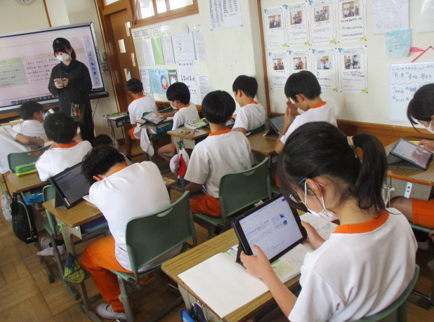 2組さんは社会の時間。先住民族であるアイヌ民族について探究中でした。「ウポポイ」や「カムイ」などの言葉の意味を調べていました。