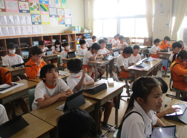 1組さん2組さん、ともに社会科の時間。新聞づくりを継続中です。