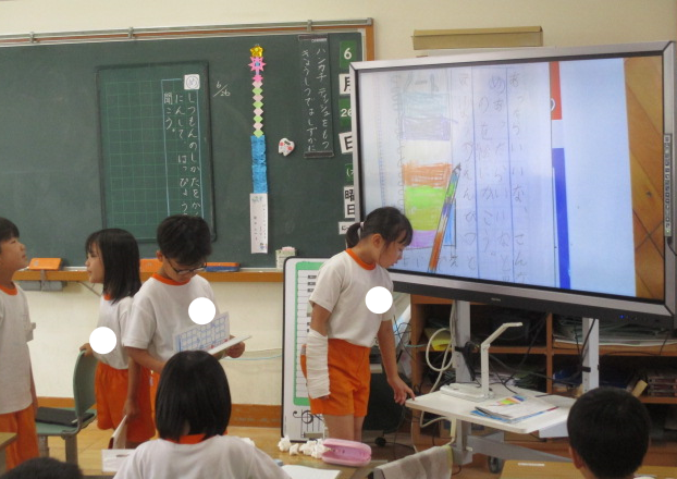 2組さんは国語の時間。「大きなかぶ」の読み取り中。