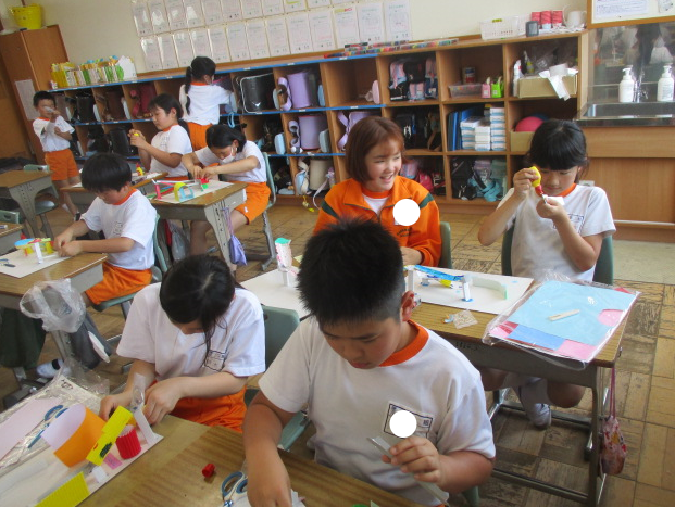 2組さんは図工の時間。仕上がりつつある作品をどうぞ。