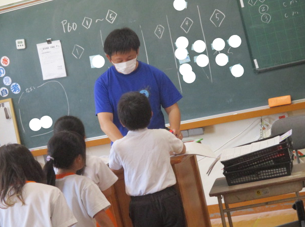 2組は国語の時間。「スイミー」の群読をすすめています。