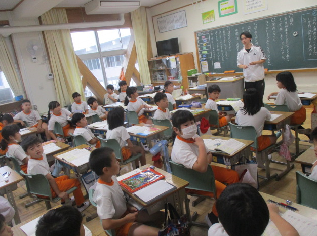 1組さんは国語の時間。今日もノートにシールが貼られていて、それぞれの頑張りを担任の先生は認めて、称賛しています。