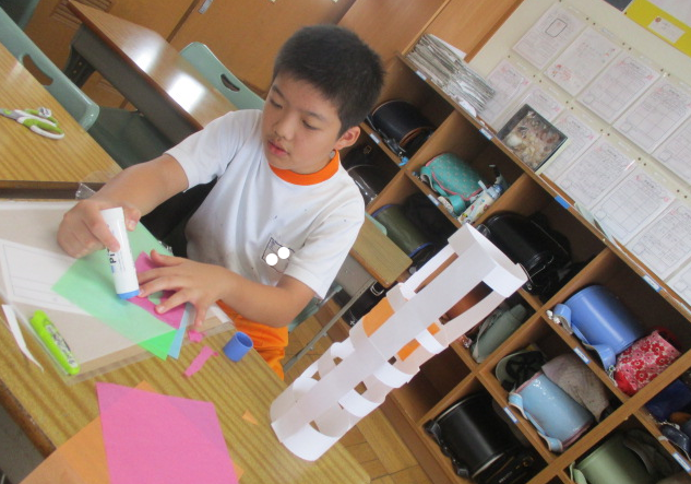 1組さんは図工の時間。「紙から生まれるすてきな明かり」