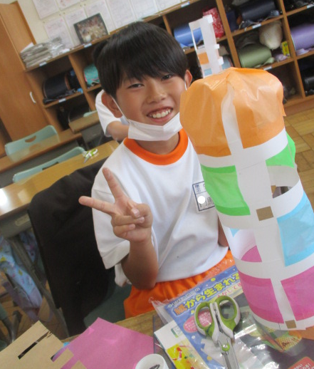 2組さんは図工の時間。各々が制作した作品を紹介してくれました。