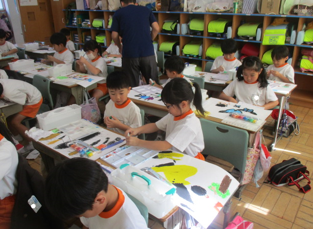 1組さんは図工の時間。とってもダイナミックな絵ですね。