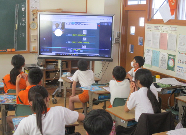 1組さんは外国語活動の時間。ロイロノートで作ったシートを音声付で発表。